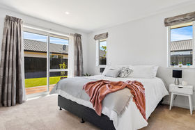 Enjoying all the comforts of a modern build, this warm and inviting home boasts 3 bedrooms and 2 bathrooms, including an ensuite off the master. The large kitchen - complete with stone surfaces, Bosch appliances and a breakfast bar - is complemented by open-plan living/dining spaces and a separate lounge, with large windows flooding the communal spaces in natural light. Double glazing and a heat pump conspire to keep the home cosy and warm throughout the year, while neutral décor ensures the new owners will have no problem expressing their own sense of style and personality.